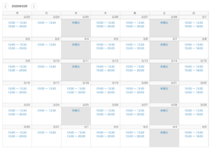 3月の営業日についてお知らせ
